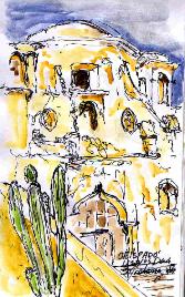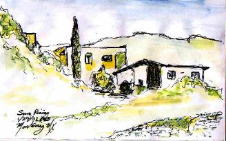 I woke early and did a few sketches. Sun Rising shows the typical type buildings and a special home I saw last night that Andy