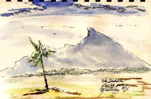 Landing in Monterrey I had a view of "The Saddle", a mountain that looks like a saddle. My sketch only got the backside and